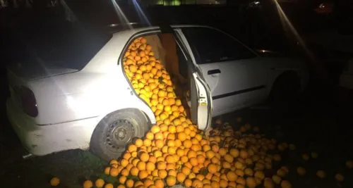 Segundo a imprensa local, a polícia suspeitou dos dois carros e começou a persegui-los. Ao chegar perto, os policiais verificaram que os veículos estavam repletos de laranjas.