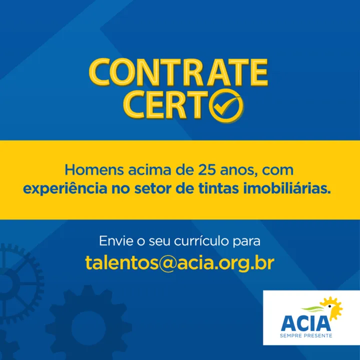O programa 'Contrate Certo' da Associação Empresarial e Comercial de Arapongas (Acia) está com vagas abertas para vendedores de tintas imobiliárias.