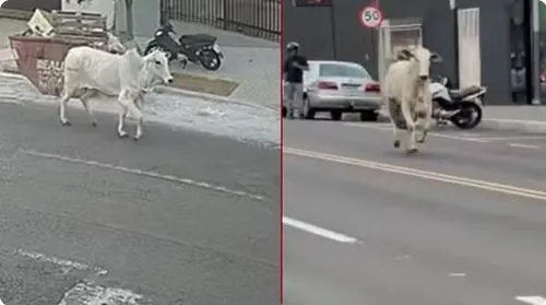 Um boi deixou moradores assustados e causou prejuízos ao escapar de uma picape e correr pelas ruas de Paranavaí, no noroeste do Paraná, nesta segunda-feira (22). O animal, que estava sendo transportado em uma gaiola boiadeira para um frigorífico, ficou agitado, rompeu a estrutura de contenção e saltou do veículo em movimento.