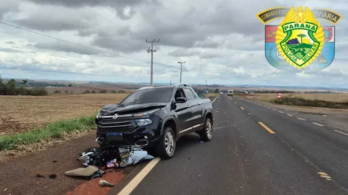Colisão entre Honda/Biz e Fiat/Toro ocorreu na PR-090; motociclista foi levado ao hospital