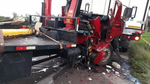 motorista do caminhão guincho. A cabine do veículo foi totalmente destruída e