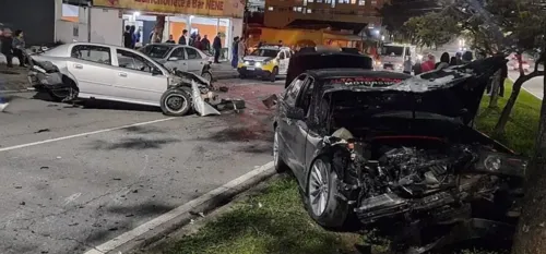 Um acidente impressionante com quatro carros parou a pista da Avenida Presidente Kennedy. Testemunhas falam em racha