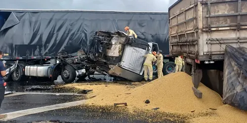 Segundo informações preliminares da Polícia Rodoviária Federal (PRF), foi causada após um dos veículos perder o controle, realizar uma manobra conhecida como "L" na pista e atingir o outro caminhão.