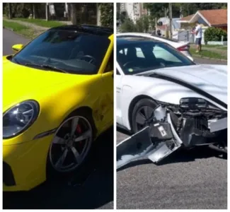 Dois veículos Porsches, avaliados em R$ 2,6 milhões juntos, bateram em uma esquina de Curitiba