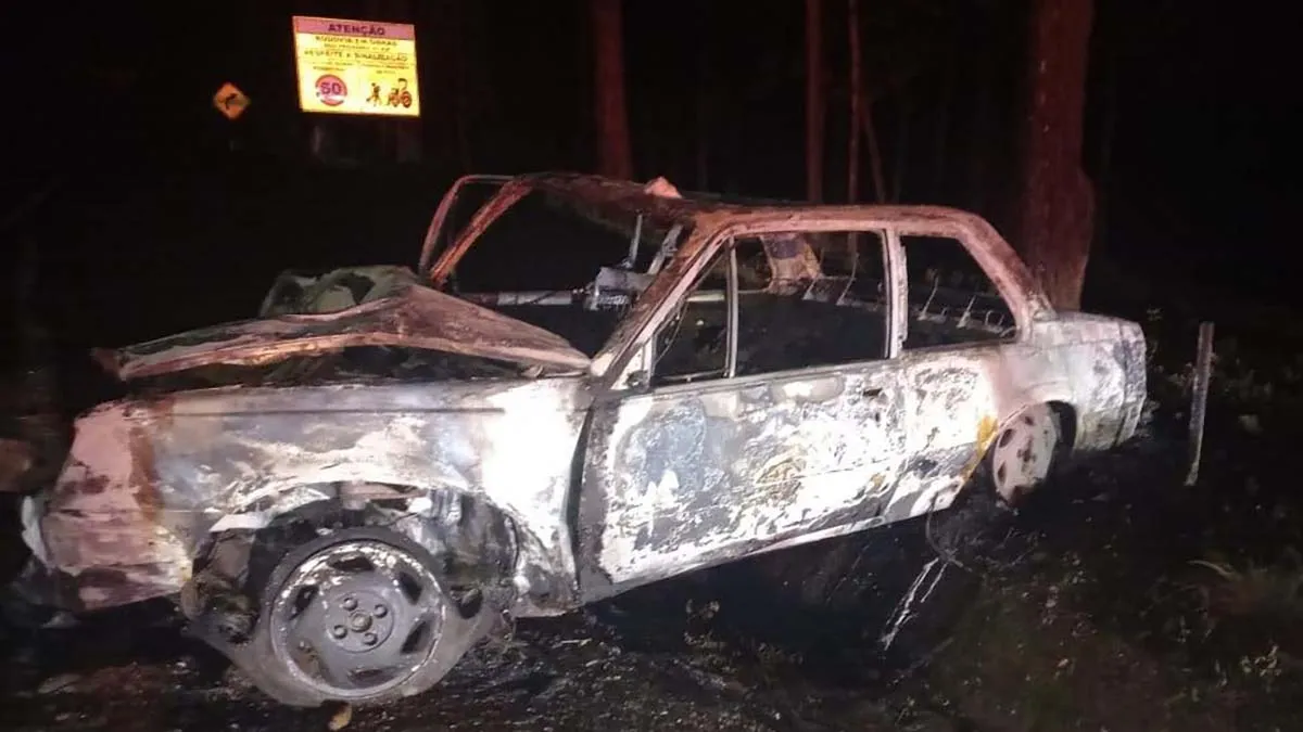 Após o impacto, o automóvel entrou em chamas e foi destruído pelo fogo. As causas do acidente serão apuradas.