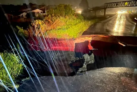 Asfalto de rodovia no Paraná cede e trecho é bloqueado