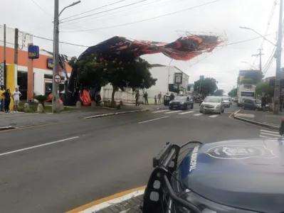 Para a retirada do balão, que ficou preso na rede elétrica que passa por uma agência bancária, a avenida precisou ser interditada durante um período da manhã.