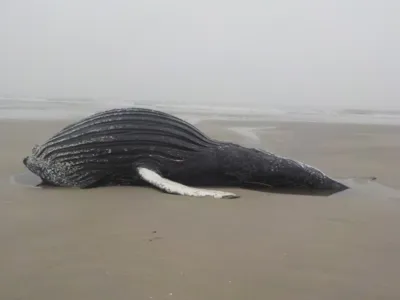 Baleia jubarte é encontrada morta com marcas de rede no PR