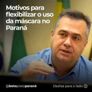 O secretário de Saúde do Paraná, Beto Preto, fez uma publicação na manhã desta quarta-feira (16), citando motivos para a flexibilização do uso da máscara no estado devido à pandemia da Covid-19.