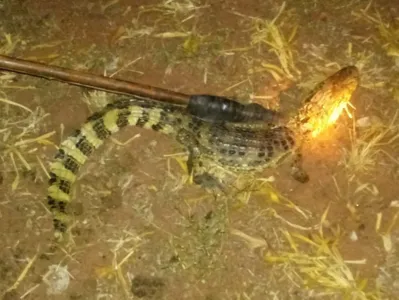 Bombeiros capturam jacaré no quintal de casa no Paraná