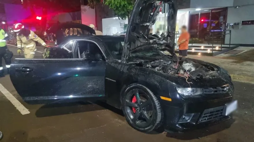Um Chevrolet Camaro ficou parcialmente destruído após um incêndio na noite desta quarta-feira (18), no centro de Cascavel, no oeste do Paraná. O incidente ocorreu no cruzamento das ruas Afonso Pena e Mato Grosso. Apesar do susto, ninguém ficou ferido.
