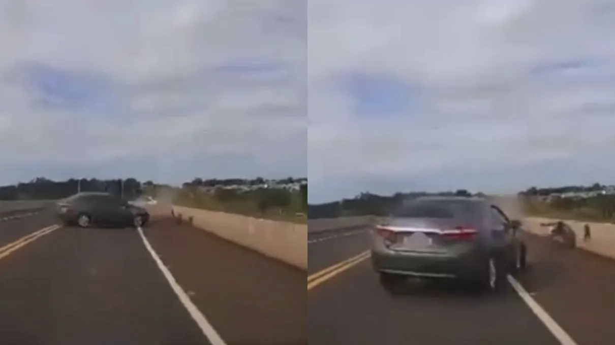 Imagens registradas por uma câmera de segurança de um veículo mostram o momento do acidente que deixou cinco pessoas feridas na BR-277, em Foz do Iguaçu, no Oeste do Paraná, na manhã deste domingo (15). A colisão envolveu três automóveis. (Vídeo abaixo)