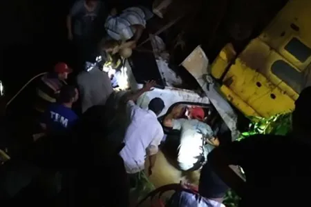 Caminhão cai em rio na PR-364, motorista é resgatado das ferragens