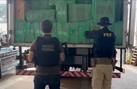 Na manhã desta sexta-feira (12), equipes da Polícia Rodoviária Federal (PRF) e da Receita Federal apreenderam um caminhão-baú carregado com aproximadamente 350 mil maços de cigarros contrabandeados do Paraguai.