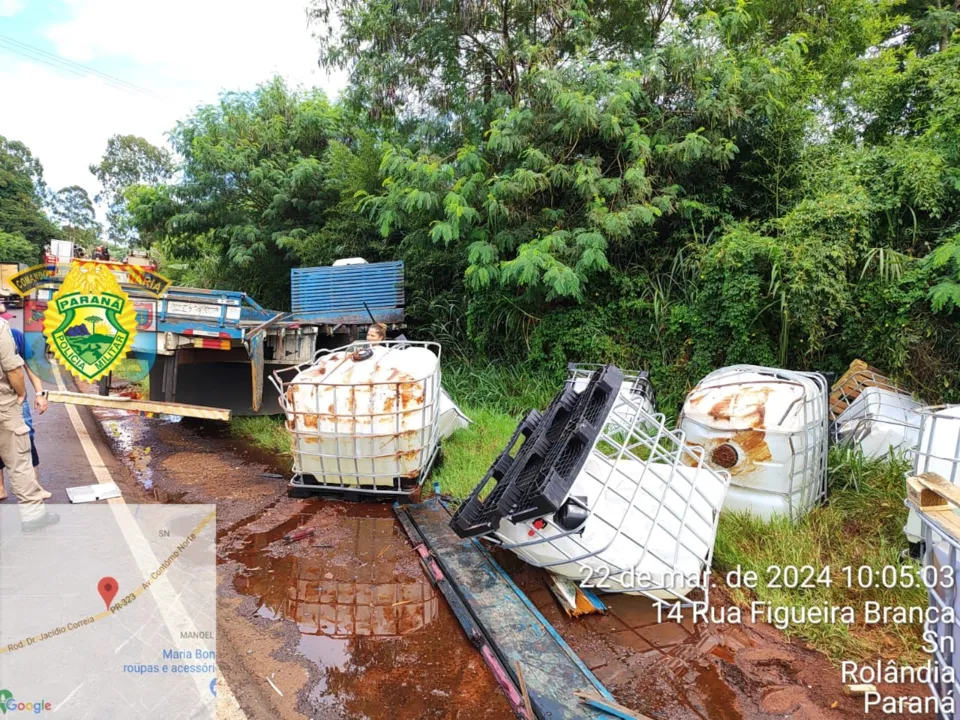 Conforme as autoridades, tratam-se de diversos produtos químicos. Dessa forma, equipes do Corpo de Bombeiros de Rolândia, assim como a Secretaria do Meio Ambiente da cidade, Defesa Civil e Instituto Água e Terra (IAT) de Londrina foram acionados até o local do acidente.