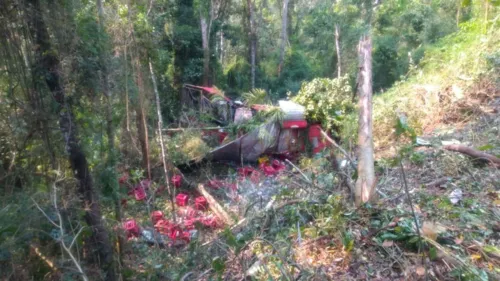 De acordo com o condutor, Luiz Sergio da Silva, de 45 anos, e seu ajudante, Israel Victor Almeida, de 23, o veículo ficou sem freio na descida e acabou tombando na curva.
