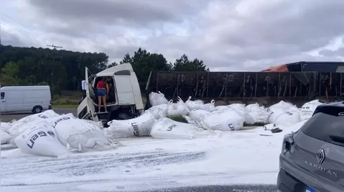 Um caminhão saiu de pista, na manhã desta quarta-feira (1°), na PR-151 e derramou parte da carga transportada, na rodovia. Os agentes da Polícia Rodoviária Estadual (PRE), prestam atendimento no local.