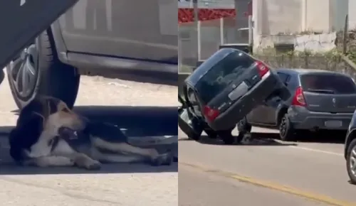Cão é flagrado descansando em sombra de carro após acidente no Paraná; veja vídeo