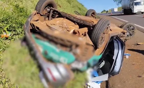 Carro carregado com vacina fica destruído em capotamento no Paraná