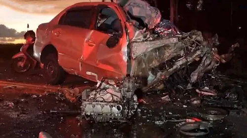 Segundo a PRF, o motorista do Voyage fazia uma ultrapassagem quando bateu de frente com uma van no km 496. Um caminhão baú e uma motocicleta Honda Biz que passavam pelo trecho também foram atingidos.