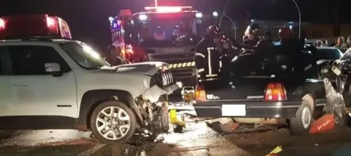 Na noite deste sábado (5), um carro com ex-prefeitos se envolveu em acidente na Avenida São José, em Nova Esperança. Conforme informações apuradas pela reportagem, um Chevrolet Monza bateu frontalmente com um Jeep Renegade. Não há informações sobre como o acidente ocorreu.