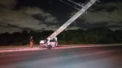Na madrugada deste sábado (17), na rodovia dos Minérios, em Rio Branco do Sul, região metropolitana de Curitiba, um carro de luxo bateu contra um caminhão.