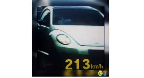 Durante a Operação Vida neste domingo (14), policial rodoviário flagrou com o aparelho de radar um veículo trafegando a 213 quilômetros por hora na PR-508, conhecida como Rodovia Alexandra-Matinhos, sendo a velocidade permitida de 100 km/h.