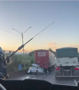 Colisão bloqueia totalmente a rodovia no sentido Santa Catarina; não há previsão de liberação da pista