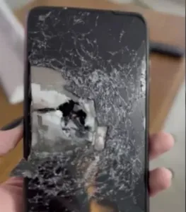 Nas redes sociais, a filha do policial Wendler, Anne Wendler, compartilhou vídeos do aparelho que pode ter salvado a vida dele. Nas imagens, é possível ver a marca do tiro que transpassou a farda do militar e alvejou o celular.