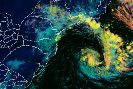 Para quem está em terra firme, o maior risco não é o vento do ciclone em si, mas a instabilidade provocada pelo choque entre massas de ar. A combinação de ar frio em altitude com ar quente e úmido na superfície favorece a formação de tempestades severas, de curta duração, mas potencialmente intensas. O cenário aumenta o risco de granizo em estados como Paraná, Santa Catarina e São Paulo, além da possibilidade de trombas d'água no litoral e formação de nuvens funil.