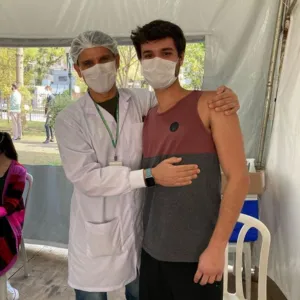 Após perder seu pai em decorrência da covid-19, o cirurgião dentista Rogério do Amaral Ferreira teve um momento carregado de emoção no sábado (21). O profissional pôde vacinar seu próprio filho, Mauricio Joaquim Grzybowski, de 23 anos. O momento foi registrado em vídeo e repercutiu nas redes sociais. Assista: