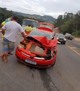 Uma colisão traseira entre um carro de passeio e um caminhão foi registrada na tarde deste domingo (25) na BR-376 na Serra do Cadeado.