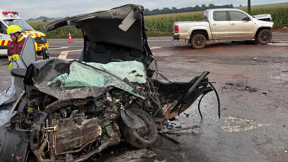 A colisão frontal envolveu uma caminhonete VW Amarok, de Primeiro de Maio, e um Hyundai HB20, de Foz do Iguaçu. O acidente aconteceu no quilômetro 27 da rodovia.