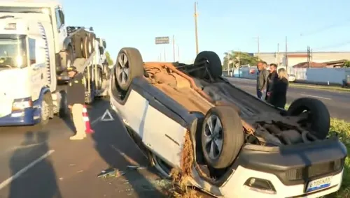 De acordo com as informações da corporação, um carro colidiu na lateral de outro veículo e capotou logo na sequência. O fato foi registrado por volta das 6h.