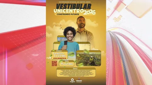 A Universidade Estadual do Centro-Oeste (Unicentro) abriu nesta segunda-feira (4) as inscrições para o Vestibular 2026. Os interessados podem se inscrever até o dia 3 de setembro, exclusivamente neste site. O valor da taxa de inscrição é de R$ 180,00.