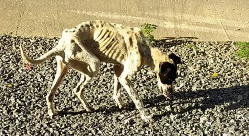 A foto de uma cachorra em avançado estado de desnutrição chamou a atenção nas redes sociais. Uma mulher de 44 anos foi presa em flagrante pelo crime de maus-tratos.