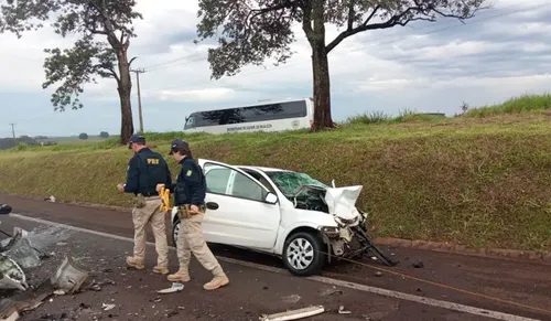 Uma colisão frontal entre dois carros deixou duas pessoas mortas e outras cinco feridas na manhã desta segunda-feira (1º), na altura do quilômetro 646 da BR-277, em Céu Azul, no Oeste do Paraná.