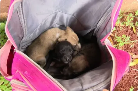 Três filhotes de cachorro foram resgatados na manhã desta quinta-feira (29) após serem abandonados dentro de uma mochila em uma calçada de Londrina, no norte do Paraná. Os animais, todos fêmeas, foram localizados por moradores locais e encaminhados para atendimento especializado no Hospital Municipal Veterinário.