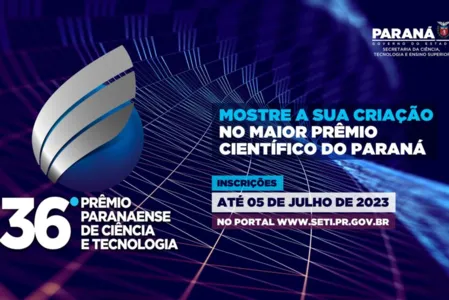 Estão abertas a partir desta terça-feira (7) as inscrições para o 36ª Prêmio Paranaense de Ciência e Tecnologia do Governo do Estado. Nesta edição, podem concorrer trabalhos nas áreas de Ciências Agrárias e Ciências Sociais e Humanas, nas categorias Pesquisador, Extensionista, Estudante de Graduação, Inventor Independente e Jornalismo. Clique aqui e faça sua inscrição.