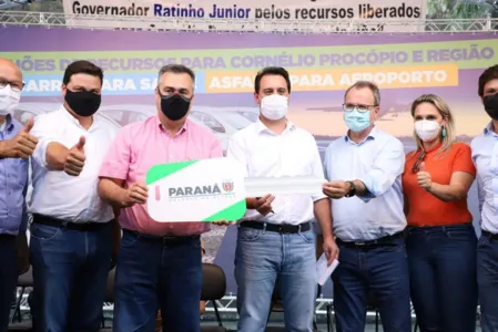 O governador Carlos Massa Ratinho Junior entregou nesta quarta-feira (03), em Cornélio Procópio, 37 novos carros para melhorar e ampliar o atendimento domiciliar dentro da Estratégia da Saúde da Família (ESF) nos 21 municípios do Norte e Norte Pioneiro, que integram a 18ª Regional da Saúde.