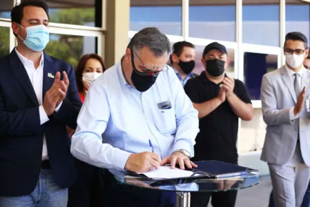 O governador Carlos Massa Ratinho Junior e o secretário de Estado da Saúde, Beto Preto, assinaram nesta sexta-feira (3) o novo contrato entre o Estado e o Hospital Costa Cavalcanti, em Foz do Iguaçu