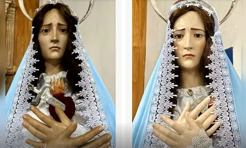"Harmonização facial" em imagem de santa gera polêmica entre fiéis; entenda
