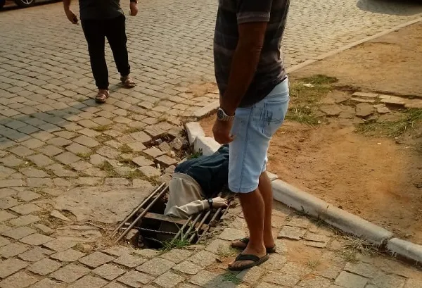 Homem cai e fica preso em bueiro em Piraí do Sul; vídeo