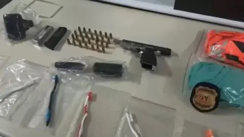 Além de objetos pessoais, os policiais também apreenderam uma pistola calibre 9 mm, que pertencia ao irmão do suspeito, um homem de 34 anos que tem passagens por homicídio e roubo.