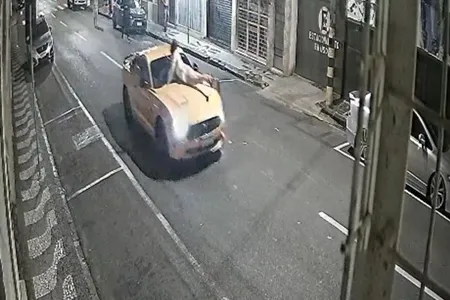 Imagens mostram o veículo de luxo em movimento enquanto a mulher se segurava nos limpadores de para-brisa para não cair. Em certo trecho, ela tentou se sentar no capô, mas o motorista não interrompeu a marcha e chegou, inclusive, a acelerar.