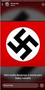 Ele ainda publicou uma suástica junto da afirmação "vem muita desgraça e morte para todos"