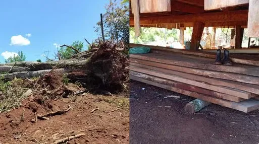 Durante a operação, realizada em conjunto com a Polícia Militar, os agentes encontraram uma área de mata recém-derrubada, toras de madeira e uma motosserra utilizada no crime. O homem confessou o desmatamento.