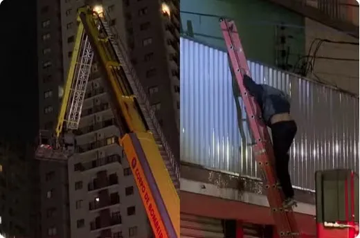 A Polícia Militar foi acionada após denúncias de que a dupla escalava a parede do estabelecimento comercial. Ao chegarem ao local, os policiais encontraram o primeiro envolvido, que indicou que o comparsa havia fugido. No entanto, durante as buscas na região com o apoio dos bombeiros e o uso de uma escada mecânica acoplada ao caminhão da corporação, os agentes localizaram o segundo homem escondido na sacada do edifício.