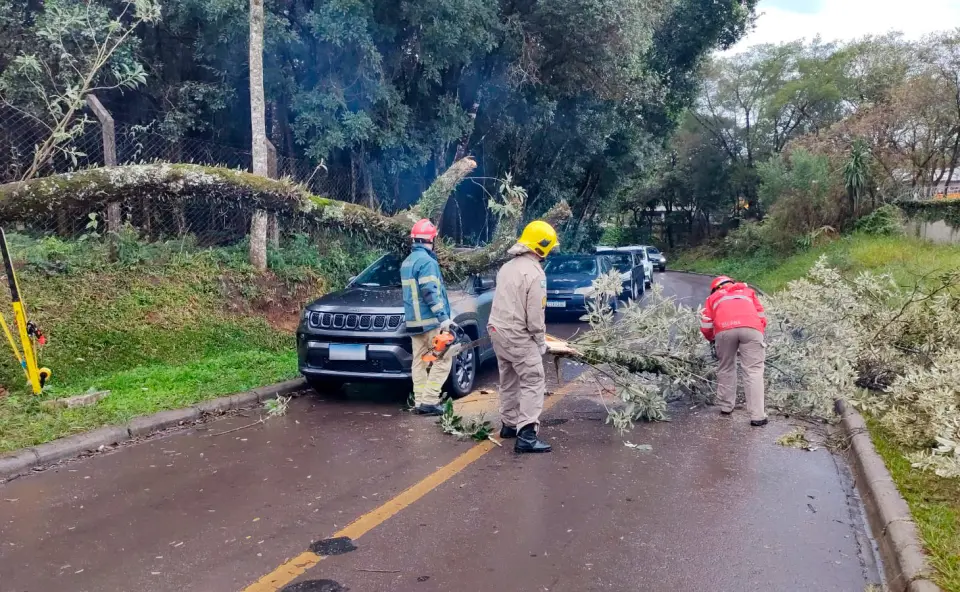 Homem escapa de árvore que caiu em cima de carro no Paraná