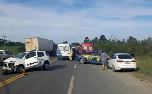 Uma idosa morreu e outras quatro pessoas ficaram feridas, em um acidente que aconteceu na tarde deste sábado (13) na BR-476, a Rodovia do Xisto, na Lapa, Região Metropolitana de Curitiba (RMC). Entre os feridos está um bebê de um ano, conforme os socorristas.